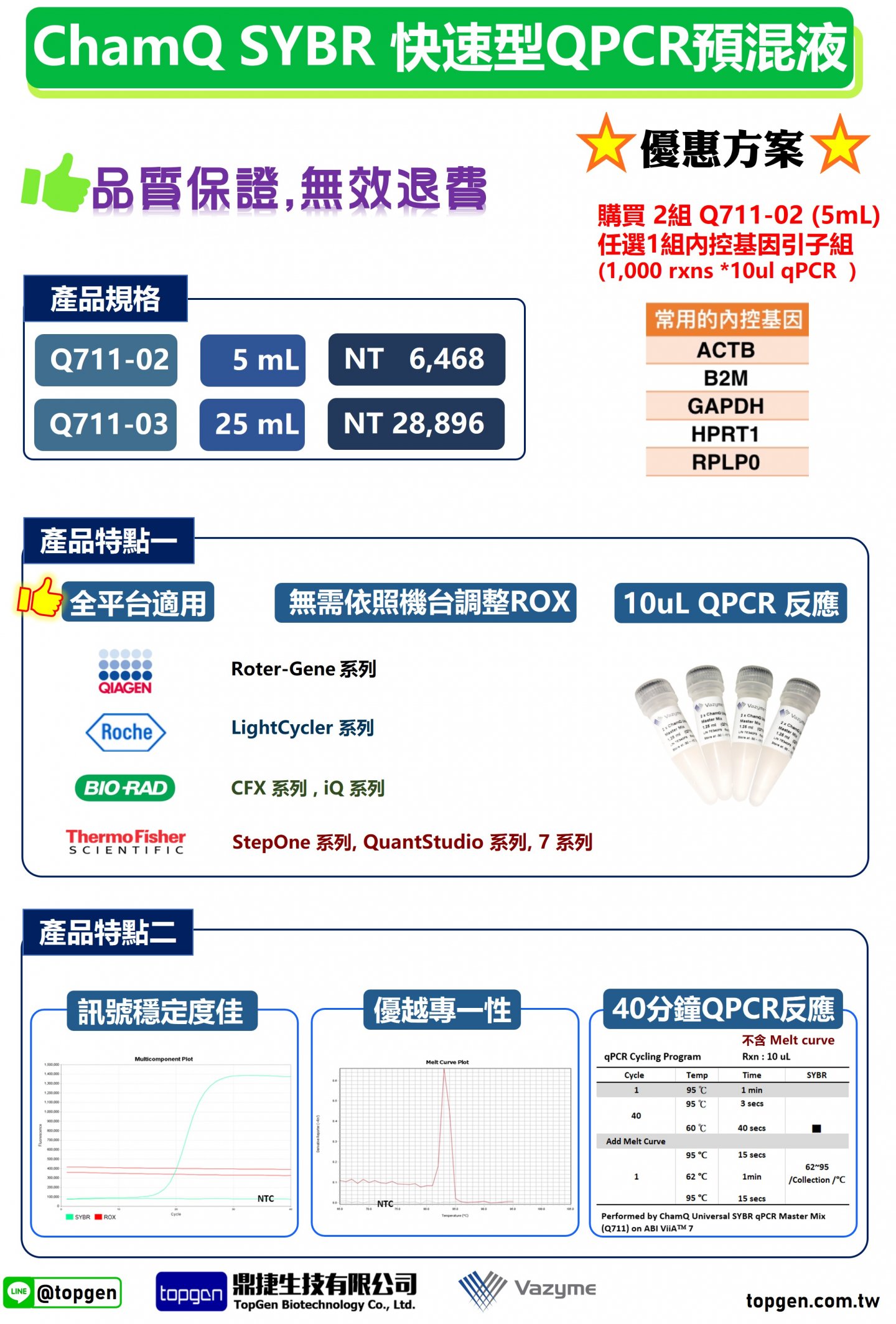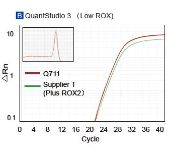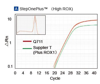 • 寬廣的平台適用性:特殊的ROX參比染料,適用於所有qPCR儀,無需在不同的儀器上調整ROX濃度。