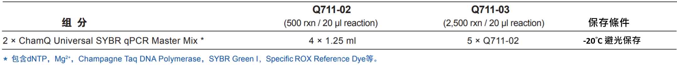 | Q711-02 | ChamQ Universal SYBR qPCR Master Mix | 5ml (500 rxn) |