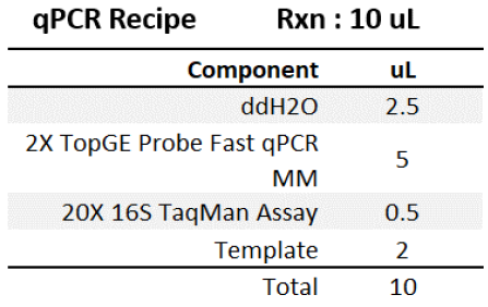 | 600105BAC | Bacteria 16S TaqMan Assay | 250 ul (500rxn) | 3,675 |