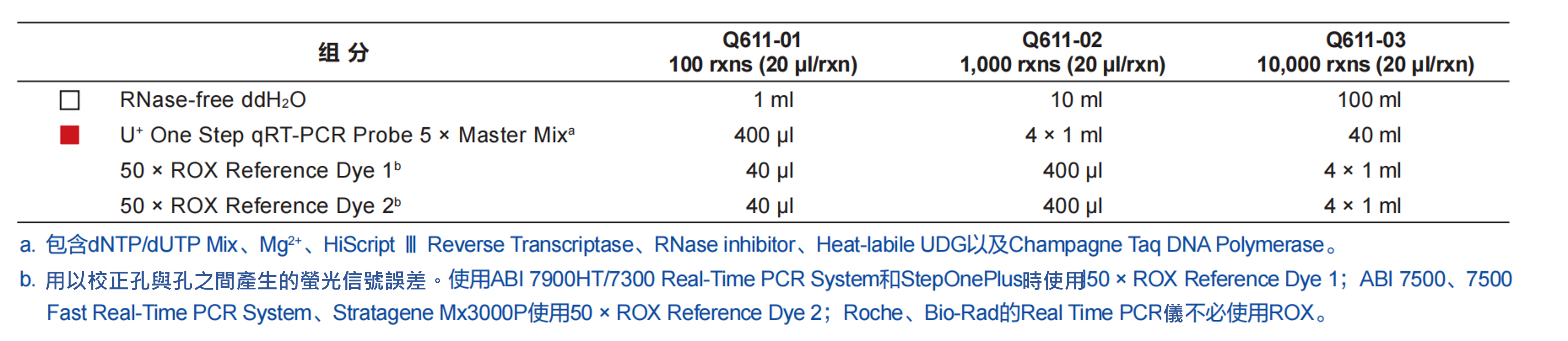 | Q611-01 | HiScript III U+ One Step qRT-PCR Probe 5 × Master Mix | 100 rxns | 8,085 |